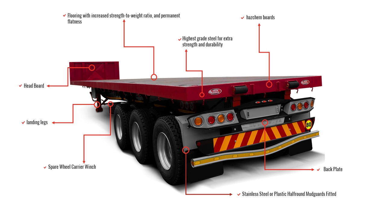 Flatdeck trailers are the most commonly used trailers on the road due to their durability and versatility. SA Truck Bodies Trailers designed to cater for optional extras to be added. These trailers can be used for a vast variety of applications from transporting containers to bulk cargo halls.
